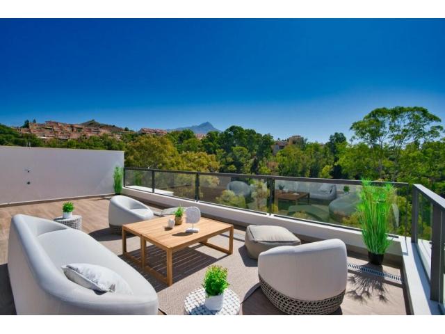 A private modern residential complex at the heart of Golf Valley, in Nueva Andalucía, just 5 kilometers from Puerto Banús. This new residential complex comprises 98 apartments and penthouses distributed throughout several three storey buildings in contemporary Mediterranean style. The development is surrounded by carefully landscaped gardens and four communal pools.